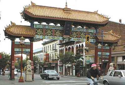 Chinatown with a magnificent gateway entrance and some narrow, seedy